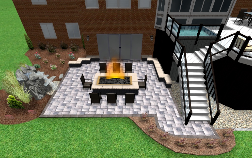 We can incorporate Plantings, Patios, Walkways, Walls, Stairs, Pool Areas and Firepits into your Computer Animated Design.