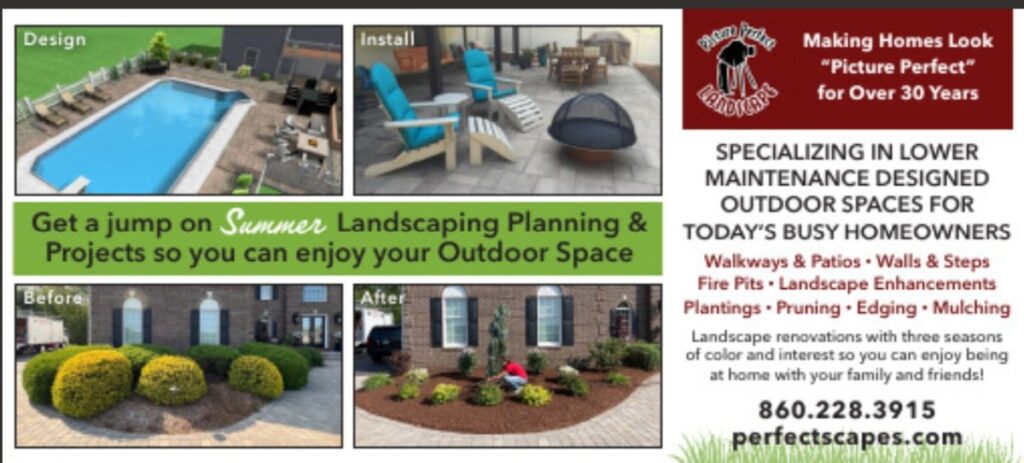 Memorial Weekend UPDATE We are currently scheduling out about 1-2 weeks out for initial appointment/onsite assessment on walkways, patios and retaining walls and planting renovations. We are working with our current clients on renovating or updating their existing landscape as summer weather approaches. Once you contact our office, we ask that you send us some photos, and we will send information to start planning and budgeting beforehand to get you started. This way you have some homework to do before your meeting, and we can have a productive initial onsite consult. We will also let you know current availability for scheduling new work 860-228-3915.